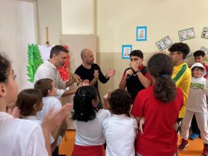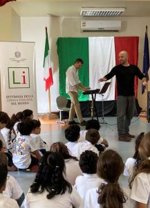 Il giorno successivo il Duo ha presentato alla Scuola italiana di Gedda uno spettacolo adatto alla primaria e secondaria ispirato dalle opere di Italo Calvino ed in particolare dalla fiaba “Prezzemolina”. Concepito in forma di laboratorio, lo spettacolo e’ stato preceduto da una intensa attività didattica avviata nelle scorse settimane su Calvino e sul tema della sostenibilità ambientale. Forte risposta del pubblico che anche in questo caso ha interagito con grande entusiasmo.